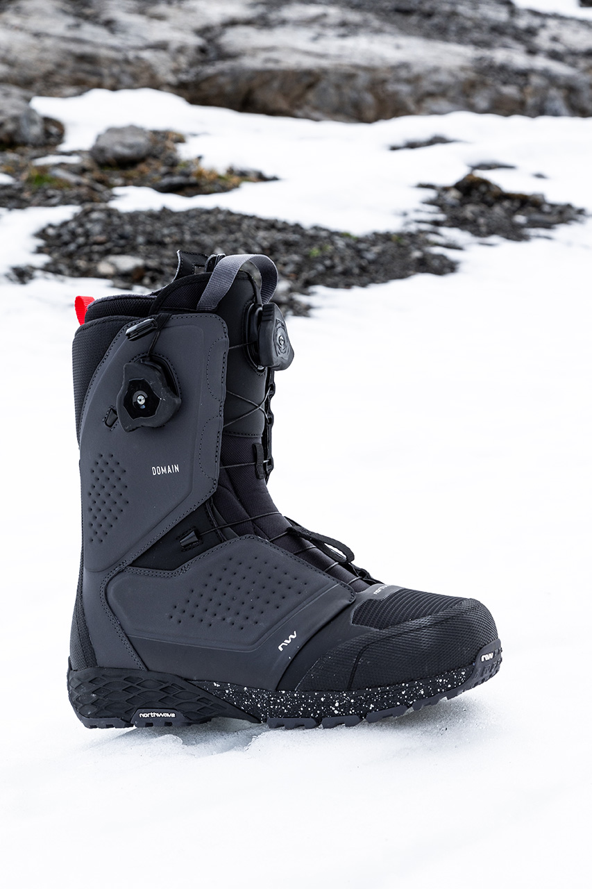HYBRIDは、SPINとSPEEDLACEの2つを組み合わせた「デュアルゾーン・システム」を採用し、2つの異なるメカニズムでブーツを締めます。スピンはアッパーを締め、スピードレースはロア部分を締め上げます。