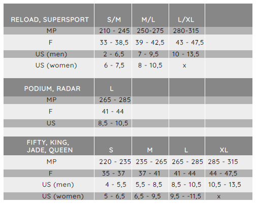サイズは画像に掲載のリストよりブーツサイズを参考に選択してください。